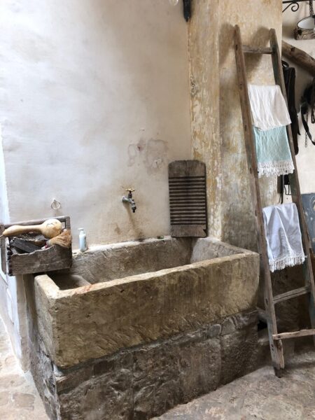 Dopo una bella risata su questo “nobile” destino comune originato da una fantasia medievale basata su una reale tassa pagata dallo sposo al signore per convolare a nozze, Greta ci ha mostrato gli ambienti del palazzo che si sviluppa su tre piani compreso quello ipogeo dove si fa colazione e si cena d’inverno e che cela una magnifica sorpresa: nella grande cisterna dove una volta veniva raccolta l’acqua oggi è ospitato l’idromassaggio sotterraneo.