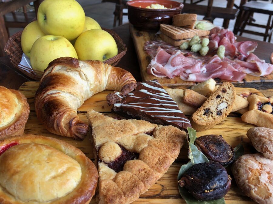 Per ora ci siamo rifatti al mattino dopo un buon sonno nella nostra piccola ma confortevole camera con i taglieri della colazione a base di specialità locali e non solo, tra dolci appena sfornati, marmellate fatte in casa, frutta e salumi, formaggi, uova strapazzate.
