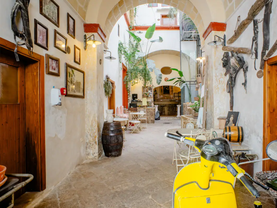 Ciò che si riconosce immediatamente tuttavia è lo spirito delle vecchie masserie della zona, cosa non scontata dato che siamo al centro del paese, alle spalle della Chiesa di San Giorgio, tra le stanze di un nobile palazzo.