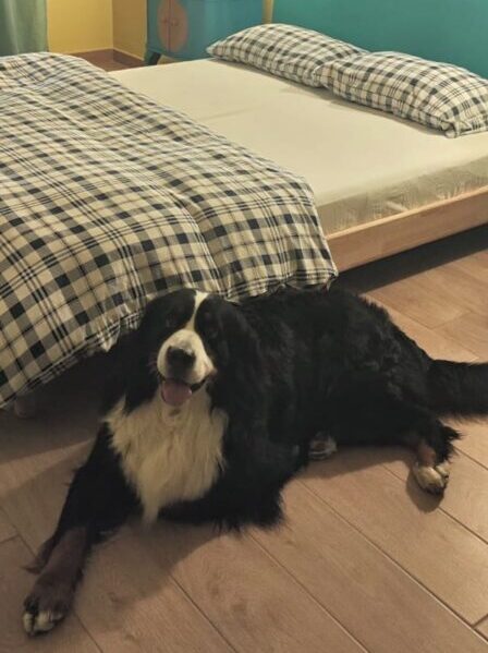 And with the added value of being able to bring your four-legged friend with you because HaBari is a low-cost, ethical, responsible and dog-friendly hostel! Otto enjoyed the large spaces of the room, but was also able to follow us into the common spaces of the kitchen and the bright veranda where you can eat, relax or work.