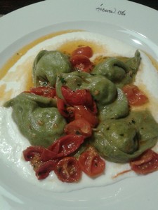 And especially thanks to the chef consultant Raffaele Ingrosso, with his long years’ experience in the cuisine of Modena, which enabled him to transform the tortellini in a wrapper, a piece of dough that can be filled with any ingredient. In fact, to us, at Azzurra, he suggested them in two different versions, after a soup of seafood and meat, rich at the same time balanced, with violet Gallipoli shrimps, squids, mussels, clams and Zollino blacks chickpeas. The tortelli, kneaded with Senatore Cappelli wheat flour, has been prepared by Raffaele with shrimps, sea bass and clams seasoned with sundried tomatoes and, in the second version, with buffalo ricotta cheese by the company La Querceta and turnips served with sundried tomatoes and stracciatella cream.