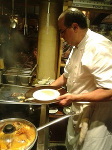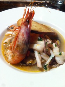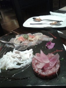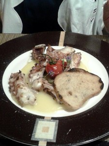 Exciting for flavors, colors and combinations the dishes of the tris served as an appetizer: filleted cod with land and sea fennel, as it is often called the salicornia, squid on a bed of parsley cream and tuna tartare with caramelized Tropea red onion As already pointed out, the cuisine by Raffaele Ingrosso retrieves local products with an open and modern look, combining them with precise art in complex dishes ranging in skillfully in tastes and sometimes tasty provocation, like the jelly ginseng to savor after the appetizer to “clean” the mouth before switching to the next dish. Another tangible example, the fish soup mentioned before and the main meal, his must dish, which “gather” his Greek experience in Thessaloniki: octopus steamed first and then grilled, served on mashed Sieglinde potatoes from Taviano. To finish off, for dessert, a very pleasant and fresh apricot semifreddo.