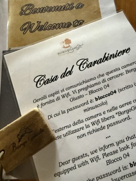 Walking with our Otto through the cobbled streets of the village, delighted by the chirping of birds in the morning and the intermittent lights of the many fireflies in the evening, made us experience forgotten sensations. In Borgo Giusto time seems to have stopped and at every corner you can breathe history, that of those who lived there in the past as inhabitants, but also of those who later decided to enjoy its tranquility as tourists.