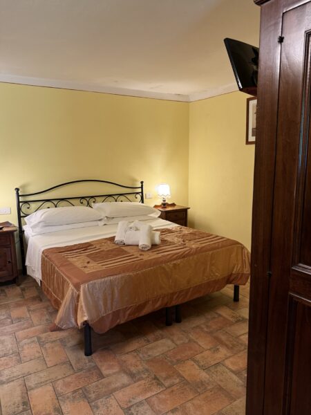 Ours? Casa del Carabiniere, large and comfortable, with a kitchen with an independent entrance and a window overlooking the village and the valley, two double bedrooms with bathroom, a small stone porch and a fenced garden with a table and chairs where you can enjoy the sunset and relax under the medlar tree. Very convenient parking under the trees and a stone’s throw from the entrance gate, while at the base of the other entrance that with a short flight of steps leads to the Borgo square there is a fountain perfect for cooling off and let our Otto drink.