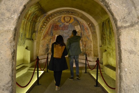 The refreshment stop will allow the next day to devote to the visit to the “Ettore Pomarici Santomasi” Museum, founded by Baron from which it takes its name and housed in the palace. Divided into several sections, including the most interesting is the archaeological, hidden among the seven rooms of the apartment on the first floor a real historical treasure trove of furniture and furnishings in the reception hall, with eighteenth-century wooden ceiling and furniture “coffered “painted, in the bedroom with dressers inlaid seventeenth century and a rich canopy of the sixteenth century and, finally, in the private chapel with a wooden altar of the eighteenth century. On the ground floor the collection of locally manufactured tiles and by Laterza and a permanent exhibition of the refined vintage clothes (XVII-XIX century) which offers a significant showcase of taste and fashion trends through the centuries. On the ground floor you can admire another masterpiece of the past: the Byzantine frescoes from the cave church of St. Vito Vecchio. Detached in the late fifties of the last century and restored, they were inserted century in a new environment that reproduces the original crypt invaded, dominated by the figure of Christ Pantocrator enthroned and blessing, flown by a almond by four angels, saints and some theories placed within the side arches.