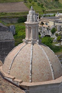 To Cennini, inquisitor general of the kingdom of Naples, you also have prisons built in the high bell tower. Guides us in the visit Peppino Spano by Association Benedict XIII, who shows us the protagonists also discovered with the recent renovation,of the rooms housed in the bell tower, once the Norman castle tower: the graffiti and drawings left by prisoners of the Inquisition. Once up to the fourth floor of the tower, the view is spectacular, ranging from the city up to the whole ravine and the surrounding countryside. Before you get to the top, we are accompanied by sprightly septuagenarian Peppino in the oldest part of the cathedral, the Romanesque now incorporated as a presbytery vault: from here is really fascinating to stretch over the plank to which are attached the five large canvases of the baroque ceiling in carved wood and gold that explains Peppino, until before the last repairs were nailed to the wood, and this gave them a special sail effect. Today they have perfectly taut thanks to a complex system of tie-rods which, if necessary via an electric button, pulls down to the necessary restoration without the need of having to remove them every time!