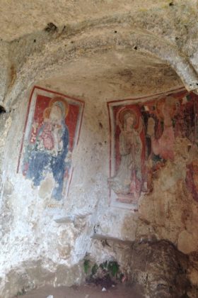 Then, descending, you arrive in Piazza San Pietro Caveoso, where there is also the homonymous church, the only one not dug out of tufa, which preserves a Romanesque bell tower. From the square, passing under a huge arch, you reach a large balcony overlooking the spectacular ravine and that leads to the church of Santa Lucia alle Malve, where you can admire many of the twelfth century frescoes including that splendid depicting the Madonna del Latte. In Sasso Barisano are, however, the rock churches of San Nicola dei Greci, with its beautiful thirteenth-century frescoes, and Madonna delle Virtù, dating back to the XI-XII century, in which the cultural association “La Scaletta” (www. lascaletta.net) regularly organizes interesting exhibitions (Visits Coop. Cave Heritage, tel. +39 377 4448885 – www.caveheritage.it – info@caveheritage.it).