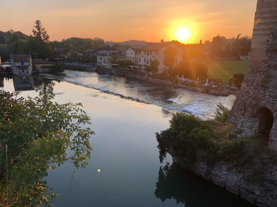 Strolling through this timeless landscape in the golden light of sunset is like being shipwrecked in another dimension that takes you back to the Middle Ages, between the three ancient mills that seem to emerge like large water lilies from the water and Ponte Visconteo, the fortified dam built in 1393 by Gian Galeazzo Visconti connected to the overhanging Scaligero Castle which continues to dominate the entire Mincio valley with its towers.
