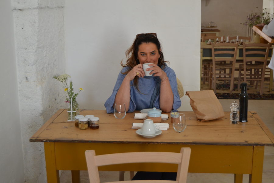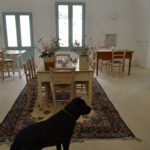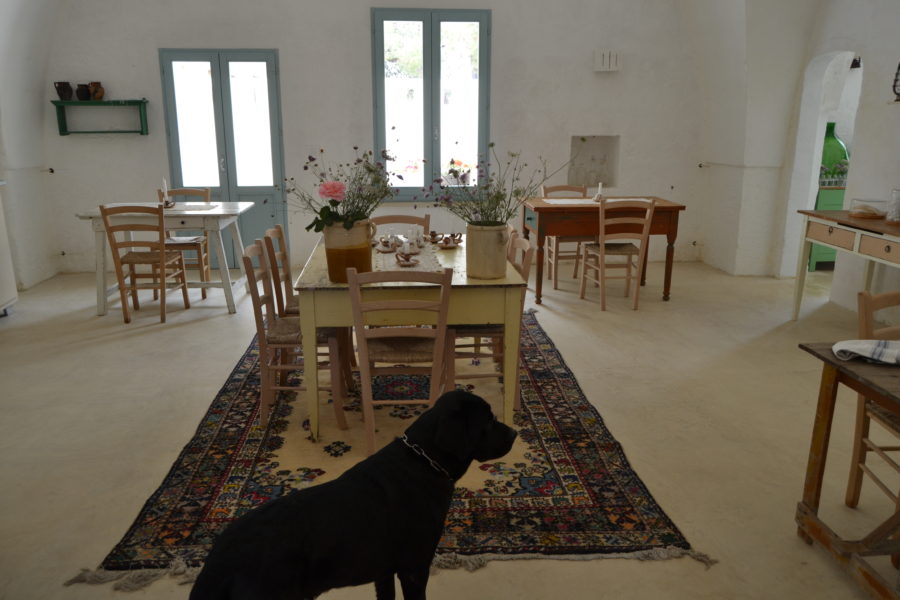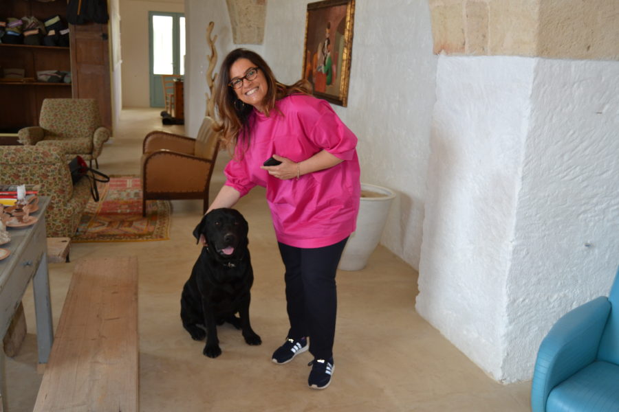The first cuddle was reserved to us just arrived from Blue, the house’s Labrador who greeted us shaking. Then, in the large salon that hosts the wine bar, Stefania Carlucci, Sommelier and Wine Woman who followed and advised Angelo and Fabiola in the selection of nectars for dinners and tastings in the tower of masseria.