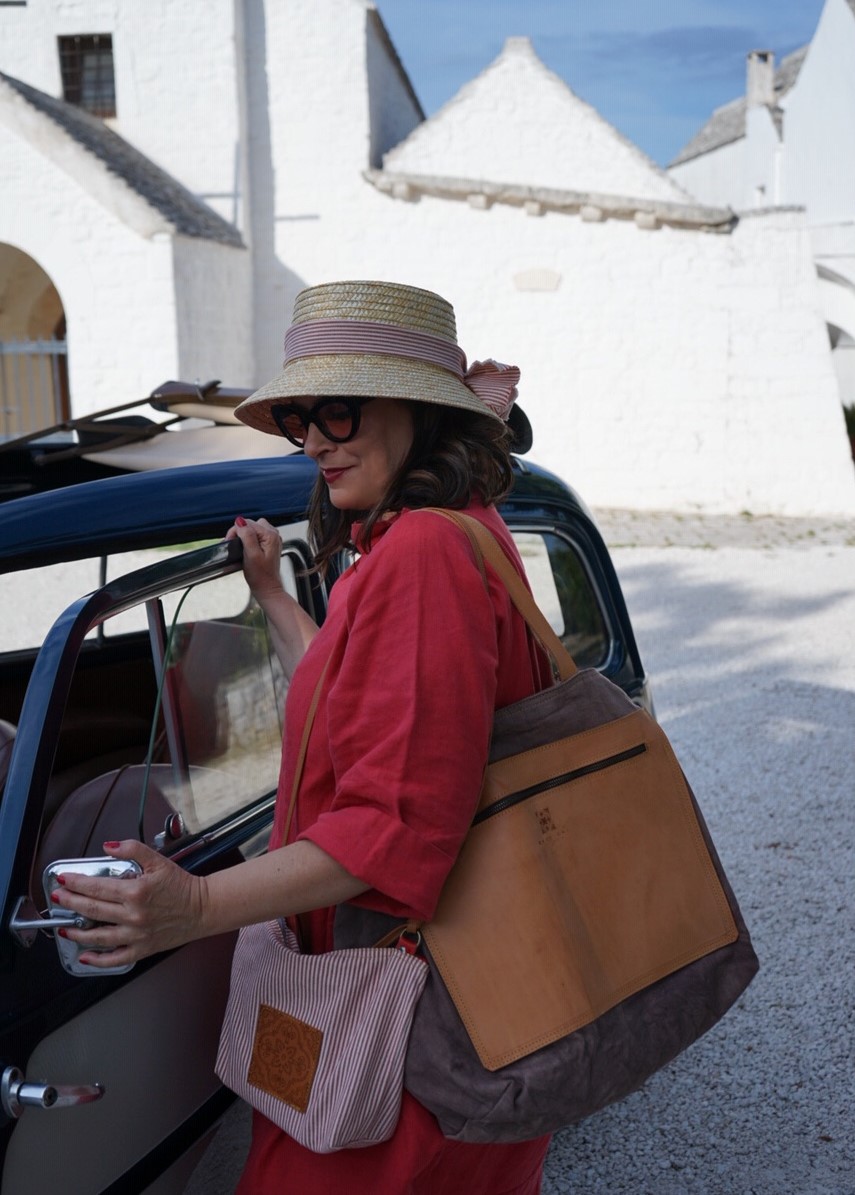 An obsession, the one for lines, that we like so much and that we wanted to make our preview! Among those proposed by Emozioni in Libertà, blue and white, black, red, I have chosen for my inseparable medium-sized bag with a long shoulder strap to wear as a bandolier, the color of passion, the red, cheerful and fun that makes you immediately think of endless days of summer.