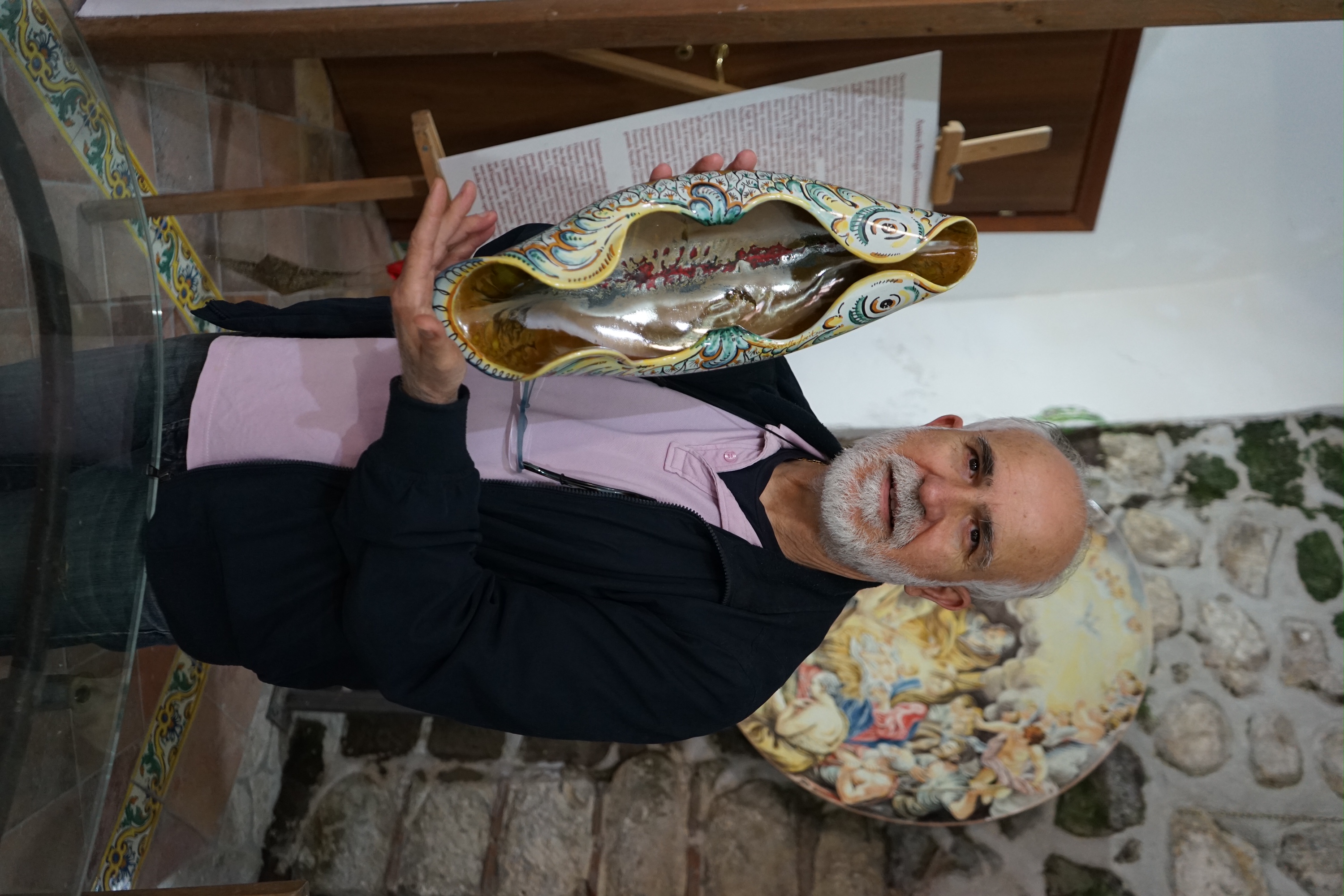 Who daily reminds me how strong the power of dreams can be: that frail boy sent little more than a teenager to a ceramist to learn the trade, studying and perfecting his art, he realized his. Today the master Elvio Sagnella has relaunched through his workshop dedicated to the ceramist Nicola Giustiniani, who in the eighteenth century defined the style of San Lorenzello, the artistic ceramics and his works are in the most beautiful churches of Campania and two of his majolica panels are placed in the portico of the Church of the Annunciation in Nazareth.