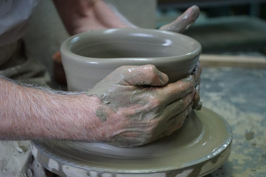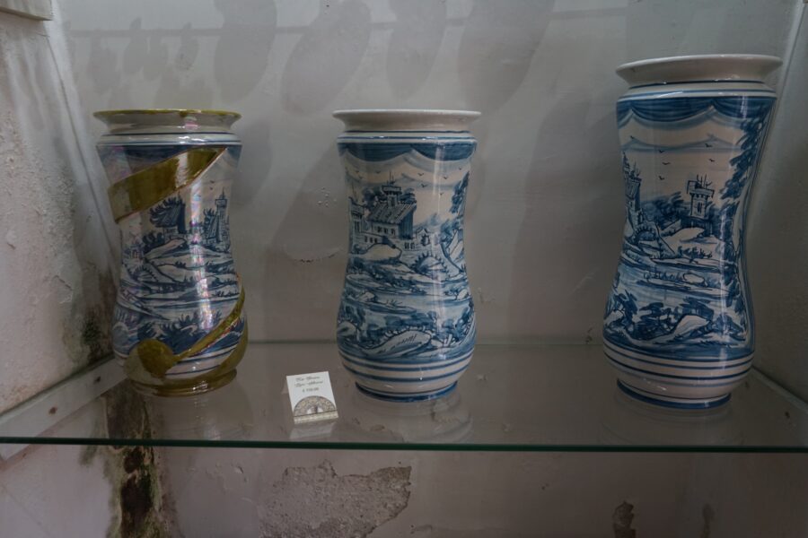 We want to tell you about the master Elvio Sagnella and his wonderful ceramic creations. We witnessed live the creation of an albarello by the same artist on the wheel while his son was intent on painting a work already baked and ready to be decorated.