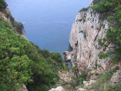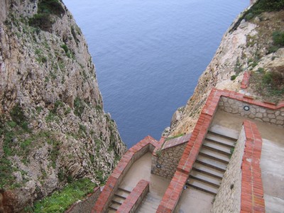Few kilometers and you reach Capo Caccia: here the protagonist is the majestic limestone promontory pierced of caves that rises 168 meters above the cobalt blue sea. On top of high cliffs, whose name probably derives from hunting wild pigeons here in the old days, it stands out the Semaforo, massive white lighthouse. While set in the mountain there is the spectacular Neptune’s Grotto which can be reached by sea or from the road going down the Escala del Cabirol, 656 steps cut into the cliff.
