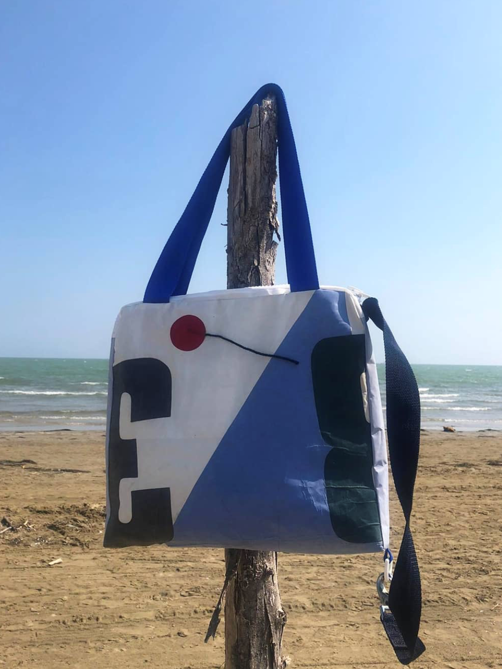 All this, together with the refinement of her ecochic creations, initially attracted us and we were then definitively conquered by her words: “I myself conceive, design and make all my creations. The final products are unique pieces finished in detail, versatile, light and durable: the sails used in fact, as well as the scraps of new fabrics destined for pulping, are extremely resistant materials and made to last a lifetime. The exact opposite of fast fashion”.