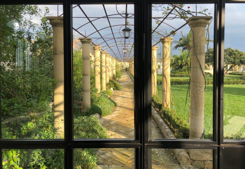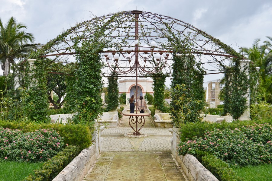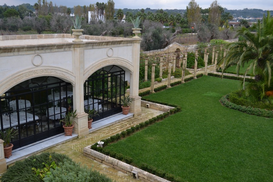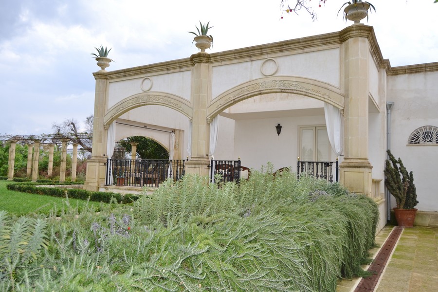 Same atmosphere of quiet in the large garden where fruit trees, essences, colors and traditional fragrances of the place have been kept, mixed with palms, old roses, lavender and rosemary.