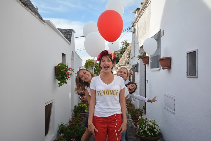 To color the bachelorete party, even women who dare. After all, on this special occasion, exaggerating it a bit ‘granted. Here, then, the invited with lovely wreaths of flowers in their hair and holding colorful balloons ready to be launched.