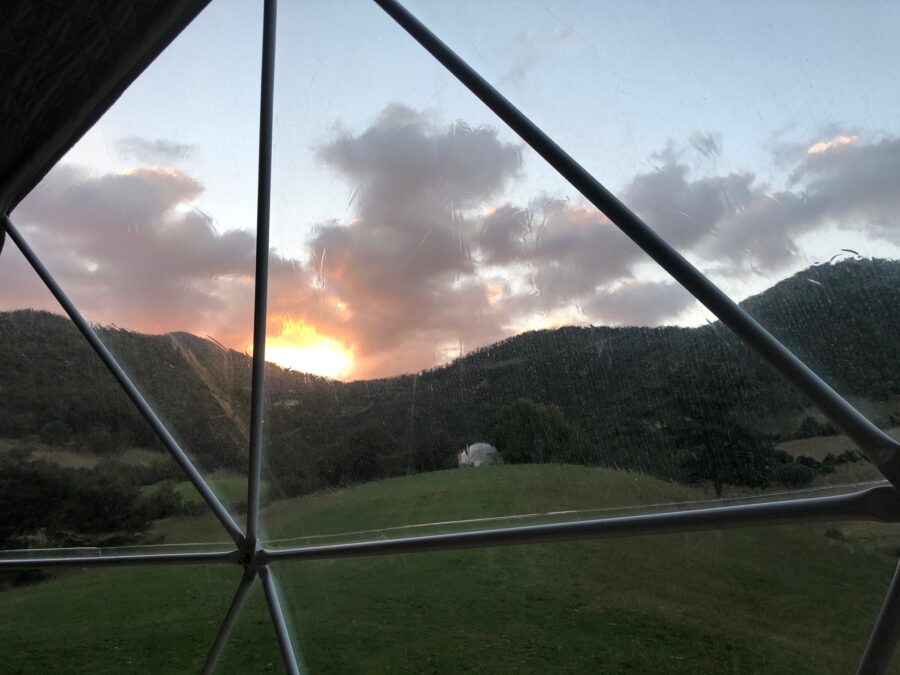 Alessandro, who met us and who accompanied us in our bubble, told us that in the future they would like it to become a meeting place. And he explained very quickly what is in the geodome with a panoramic window that allows you to enjoy a wide-ranging view of the green hills all around.