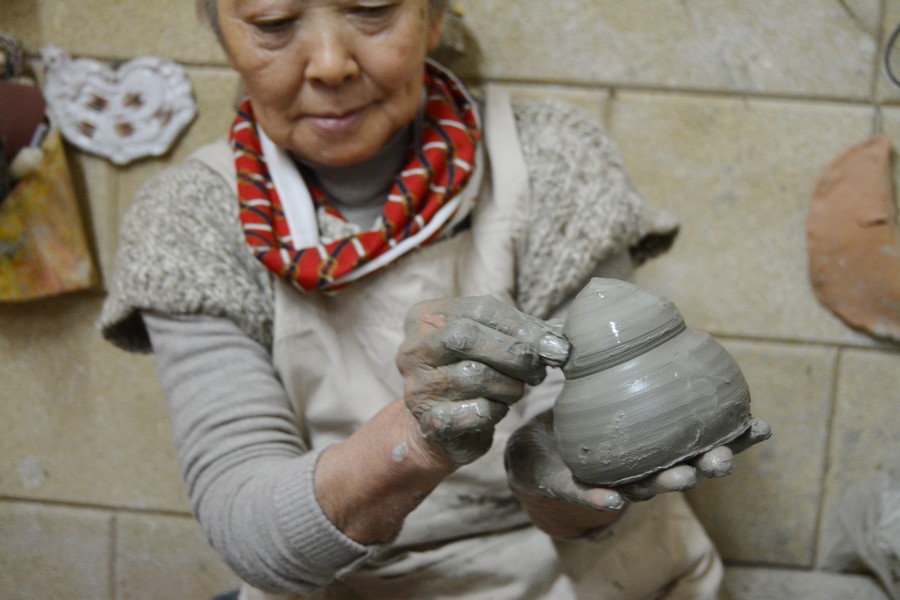 The silent work and diligent by Hiroko of the lathe distracts me from this train of thought. At one point she looks at me and apologizes “creative” disorder all around, instead fascinates me. I watch her with her small hands that shape the clay and give life to a cup, a rooster, an owl.