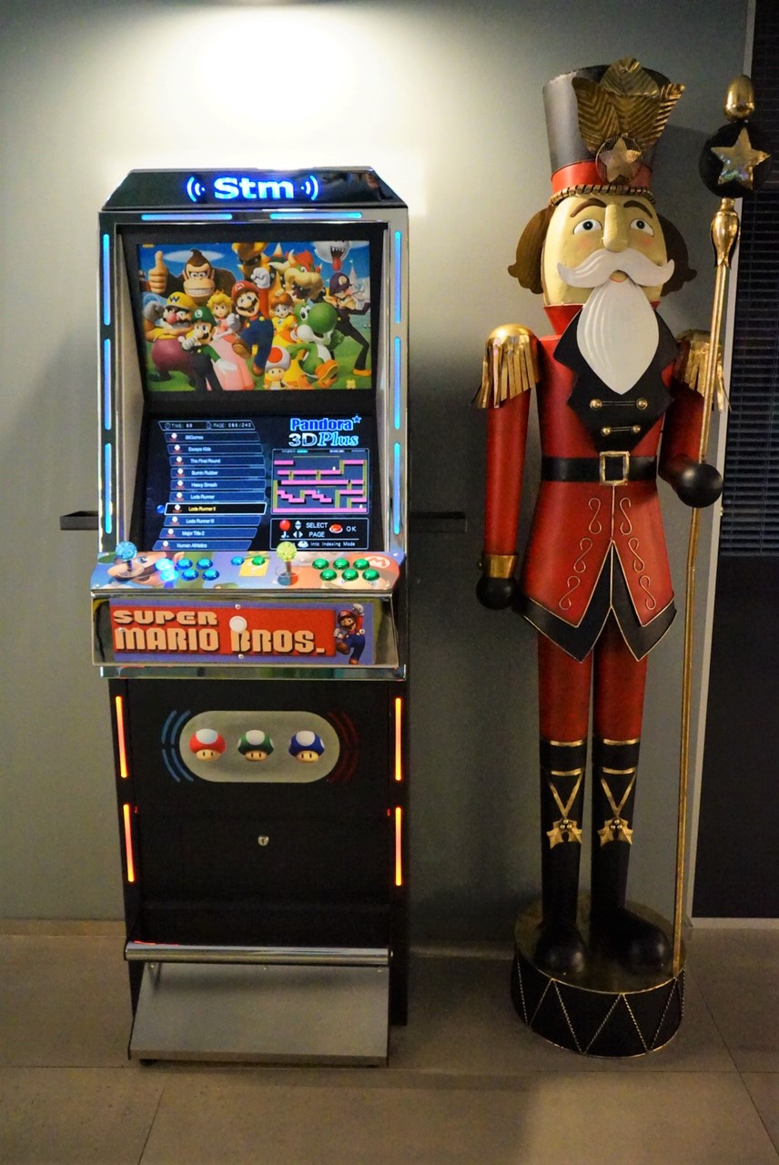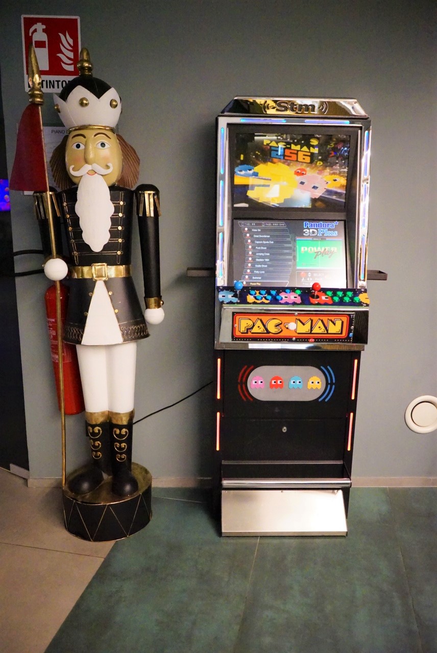 In the middle, the large room where you can stop in a free and informal way to chat, drink a cocktail, listen to live music, but also to study and work sitting together at the long tables. And even play with the two videogames with the best games of the 90s from Super Mario to Pacman and Metal Slug while waiting for check-in and buy the many gadgets offered with the Arryvo logo, such as sweatshirts, t-shirts, caps, bags, backpacks, thermal bottles, pencils, pens, mugs and even beach towels and slippers.