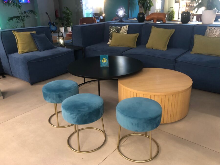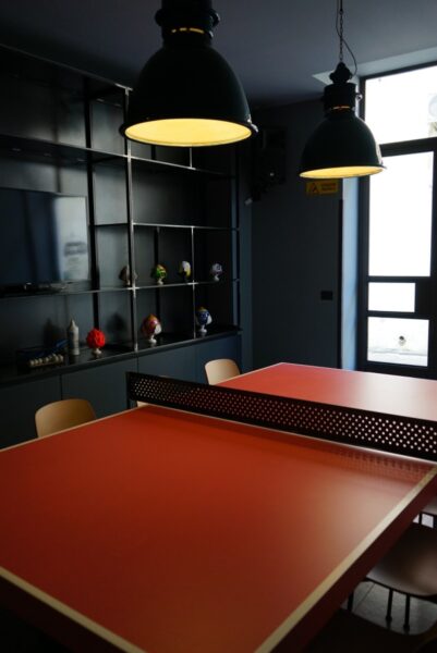 But the “pampering” for Arryvo’s customers did not end there. Guests have access to a Ping Pong room with a pink table to play but also to host business meetings in an informal setting, coworking tables to study together and stations equipped to recharge laptops and mobile phones.