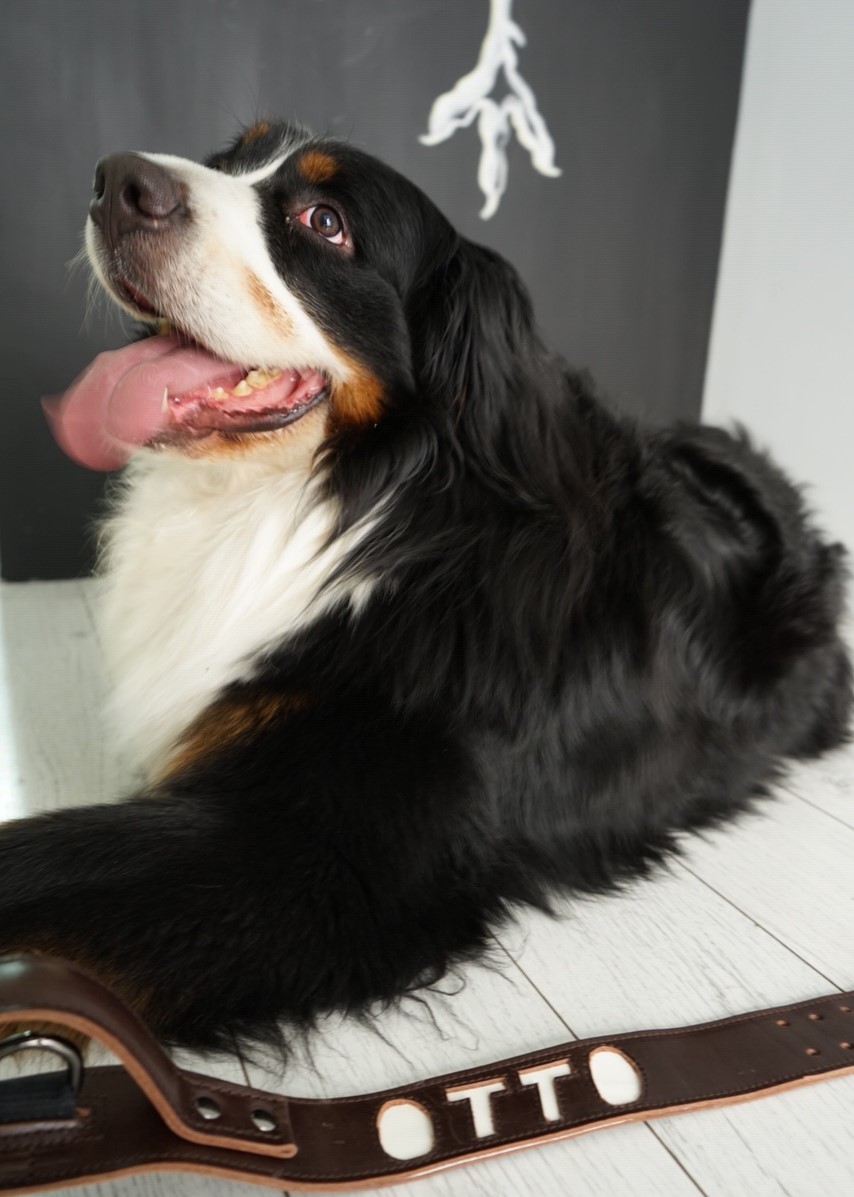 It was a promise made long ago when Otto was still a small specimen of Bernese Mountain Dog. And now it is a reality in resistant quality leather in a warm dark brown shade, elegant and comfortable, hand-sewn and with the name Otto in plain sight in candid letters.
