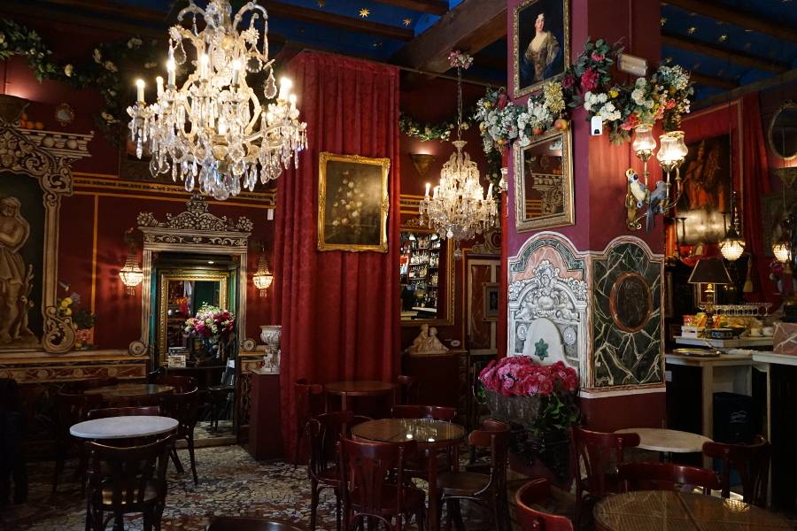 We advise you to come in and take a seat at the tables of this great atmosphere cafe opened in 1994 by Marc Insanally. You can do it at any time of the day, to enjoy a coffee or a cocktail accompanied by a slice of the excellent cakes, pleasantly kidnapped by this neo-baroque space between literary coffee, typical English tea room and American cocktail bar.