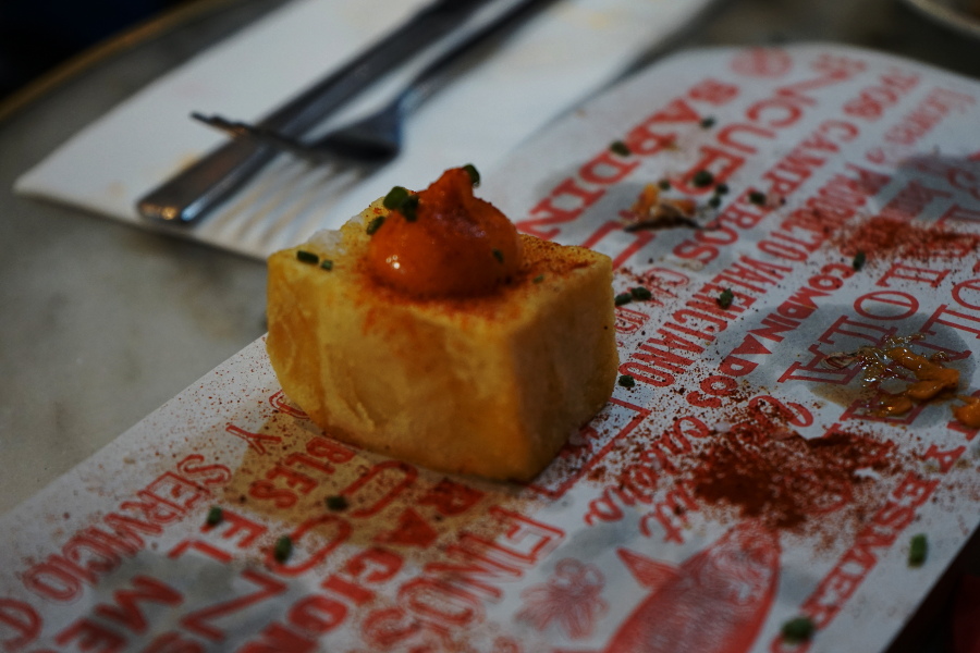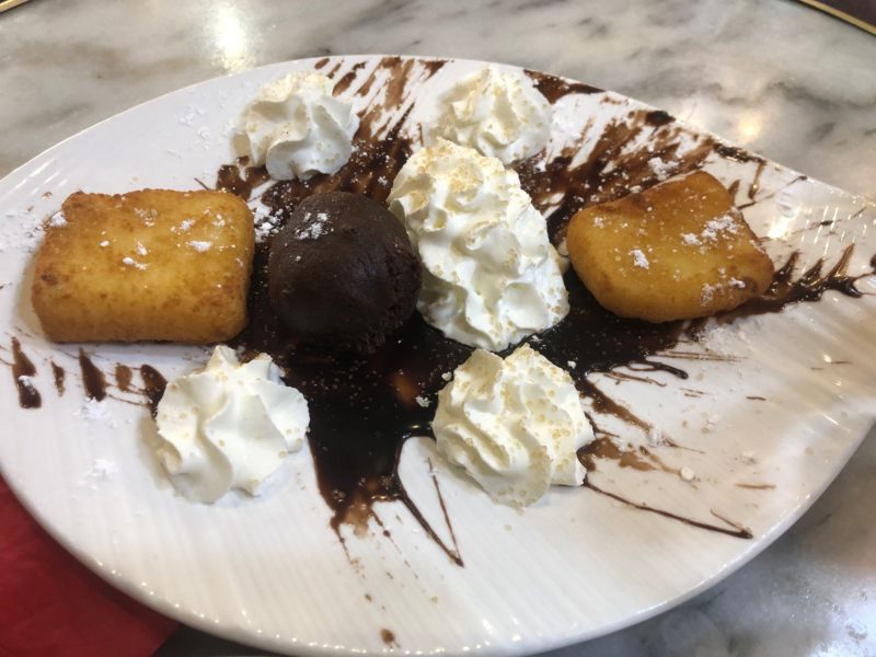 Two words about wine. On dishes so rich in flavor we were advised “Las ocho” by the Chozas Carrascal company, a combination of eight varieties of grapes flavored in French wooden barrels: an intense and elegant red wine with fruity aromas that we do not hide having chosen also because in the name we found our Otto who did not accompany us on this journey. We did not miss the delicious dessert, a Spanish classic, the fried dulce de leche.