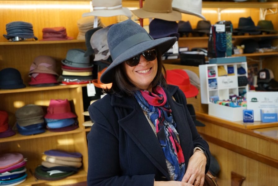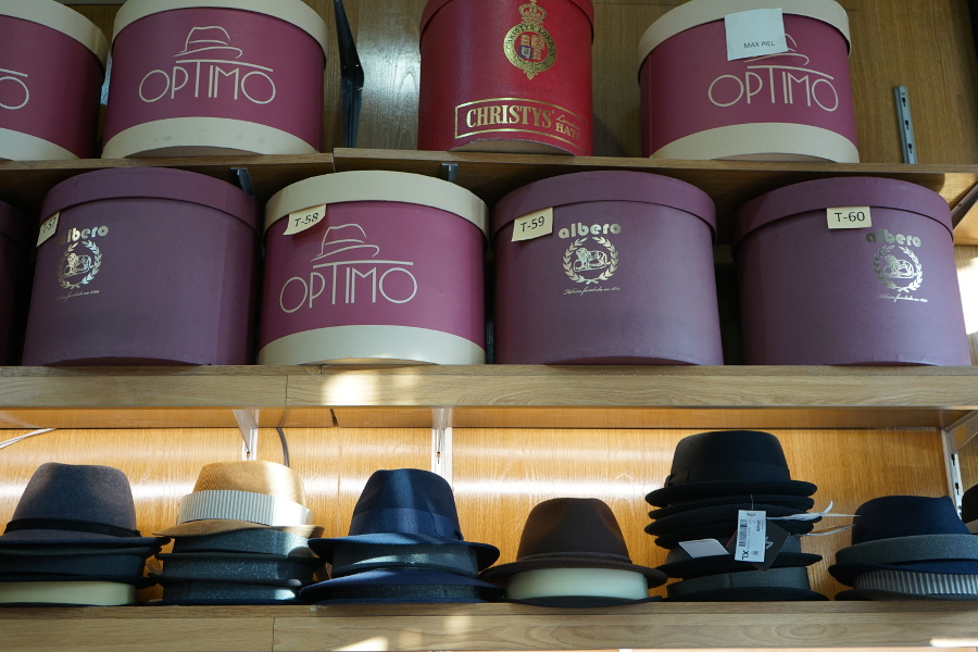 The third and final stop was the hat shop, sombreros in Spanish, Albero, where in addition to admiring the many models on display sold in their elegant boxes, I gladly lent myself as a model to show how to correctly wear a hat.
