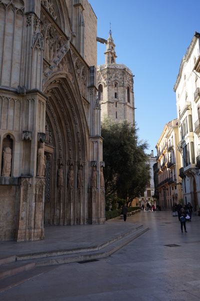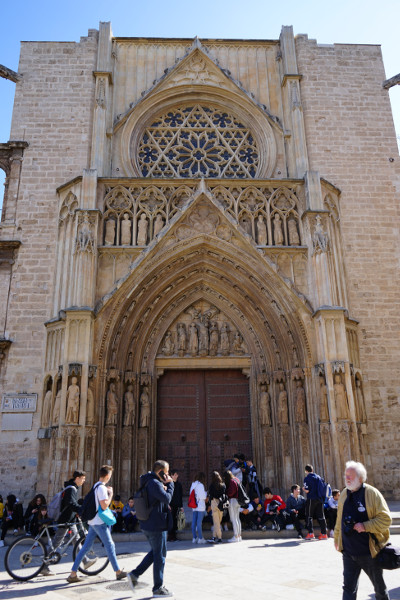 The Gothic-style door, on which the Apostles and the figures of the Virgin and Child stand out, is one of the three access routes to the Cathedral whose visit begins from the outside admiring portals and domes, covered with blue majolica typical of València, city famous for its ceramic production since the fifteenth century with various decorative objects and tiles that are very reminiscent of the Portuguese azulejos. Which in miniature format we brought home as a souvenir in the form of a magnet to be applied on the fridge.