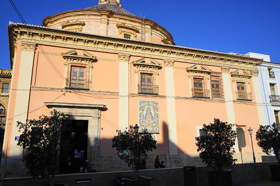 In front of the austere palace there is the church to which the Valencians are most fond, that of the Virgen de los Desamparados (the Virgin of the Abandoned) or as affectionately it is called La Geperudeta, the hump, for the position of the head, which looks downward. The interior of the church with its oval dome, with the wonderful frescoes by Antonio Palomino, is rich and precious but the gaze is completely captured by the highly venerated statue.