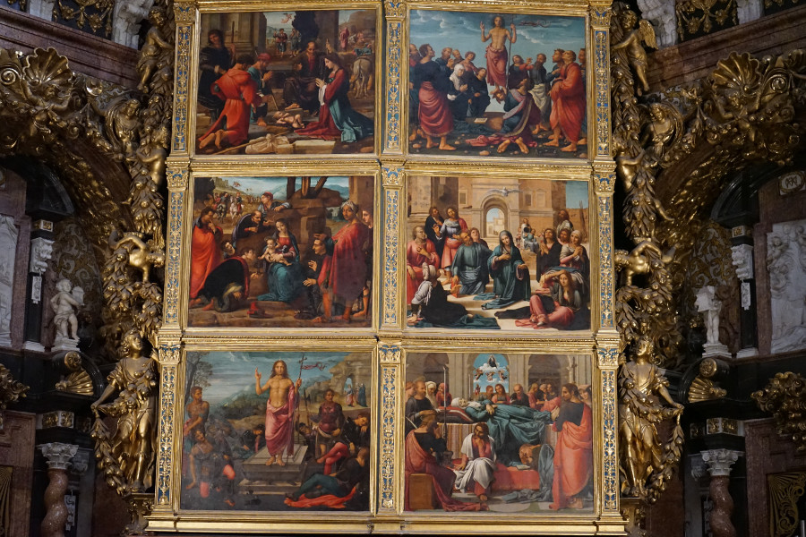 It is said that this oriental agate cup set in a gold and chalcedony frame decorated with pearls and precious stones arrived from Jerusalem to Rome where, during the persecutions of Valerian, San Lorenzo rescued it by sending it to Huesca, his hometown in Spain. After a thousand vicissitudes and a thousand years, King Alfonso the Magnanimous donated the Holy Chalice to the cathedral of València in 1437 and has since been framed by the marvelous altar, also this work by an Italian artist, Giuliano Poggibonsi, disciple of Lorenzo Ghiberti author of the Gate of Paradise of the Baptistery of Florence.