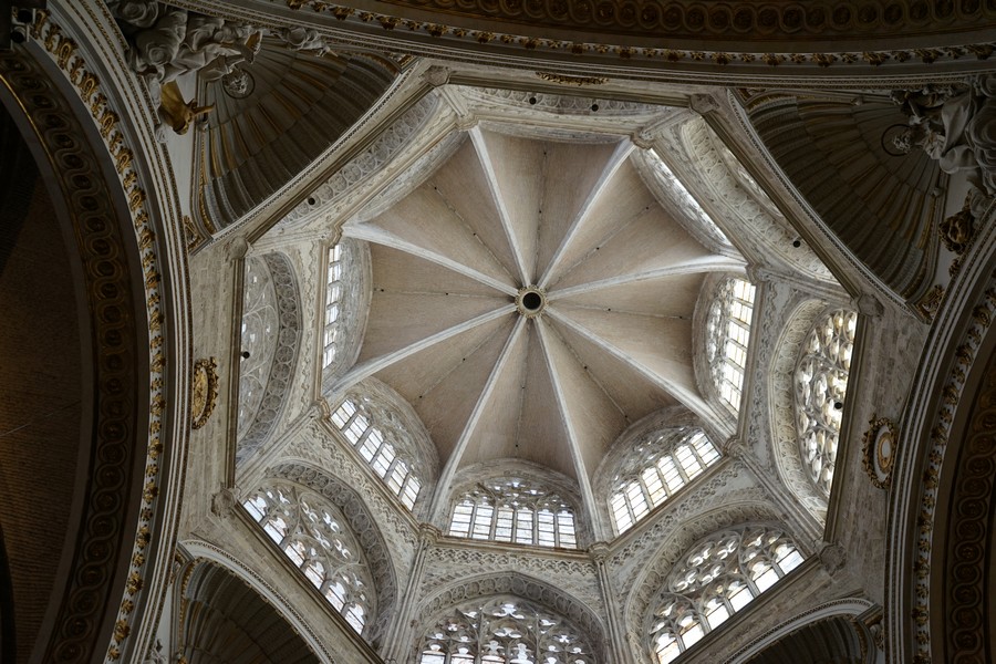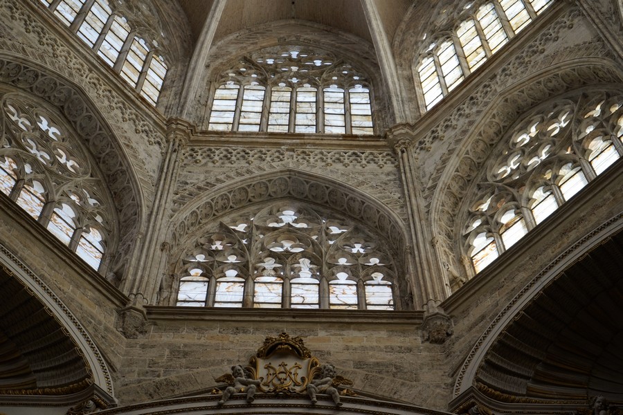 Marcos points out that unlike the other European Gothic cathedrals, the height of the aisles here is reduced and most of the light, as well as from the windows “dressed” in thin sheets of alabaster, comes from the high and scenographic lantern.