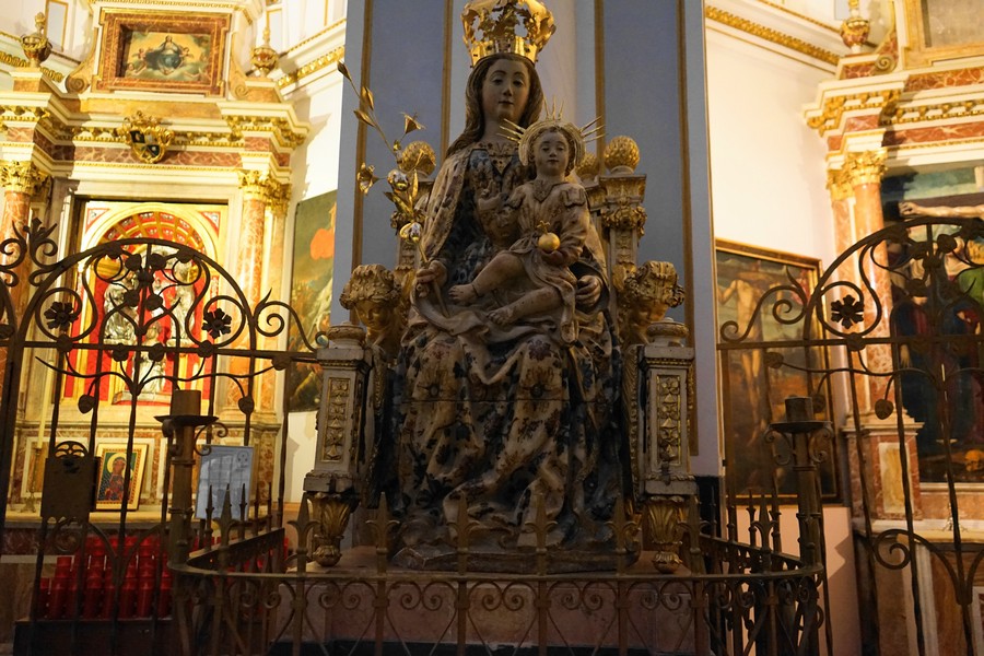 We listened to Marcos, who told us why the venerated patroness of the city of València has this inclination of the head that makes her look like a hump. It seems that the statue was first placed lying down but it was decided to place it on its feet for better admiration. This is the “technical” explanation, but there are several popular legends, the most supported of which is that the face tilted downwards is a gesture of motherly listening and welcoming.