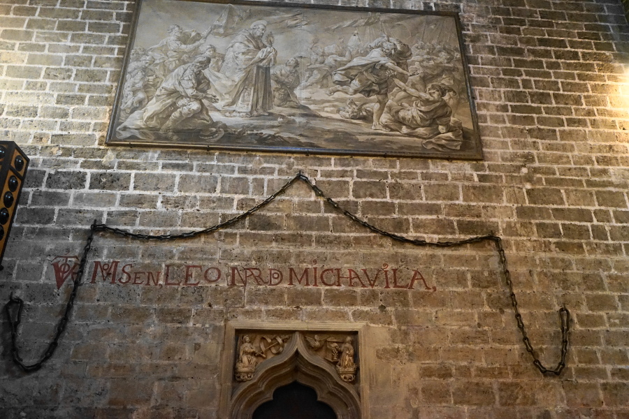 The exceptionally deserted chapel of the Holy Chalice allowed us to admire it in all its beauty. On the wall opposite the Santo Grial there are large hanging chains: they are those of the port of Marseille taken by the Aragonese in 1423.