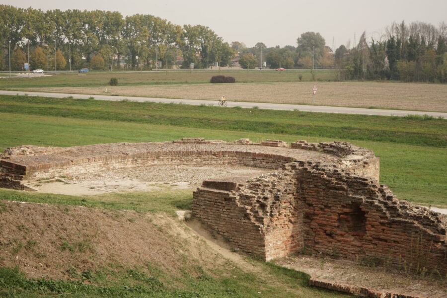 La passeggiata vi ha messo appetito? Noi ci siamo fermati a uno dei tavoli di Birraria Giori per gustare la piada locale impastata con la zucca e farcita di salame ferrarese all’aglio seduti sotto il castello a due passi dal fossato sul quale si specchia questo gioiello dell’architettura militare italiana con i rossi mattoni e le eleganti balaustre bianche.