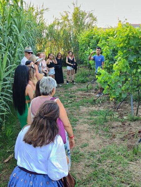 tour del vigneto vista mare ci ha accompagnati Marco, giovane proprietario nonché enologo della cantina, che con grande passione ci ha parlato dei vitigni e delle tecniche di viticoltura sfoggiando un ottimo inglese, dato che il pubblico era quasi tutto di provenienza straniera. Nel giro tra filati e alberi di olivo ci ha seguito anche il nostro Otto che ormai, pur non assaggiando il vino, è diventato un vero esperto di campi coltivati a vigna dal nord al sud dell’Italia.
