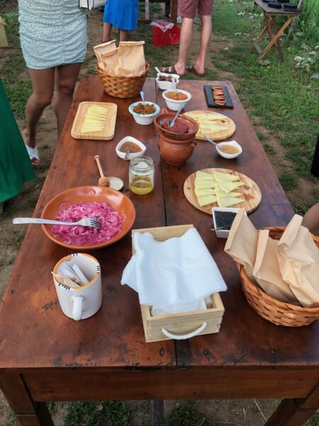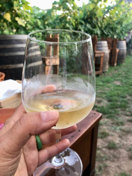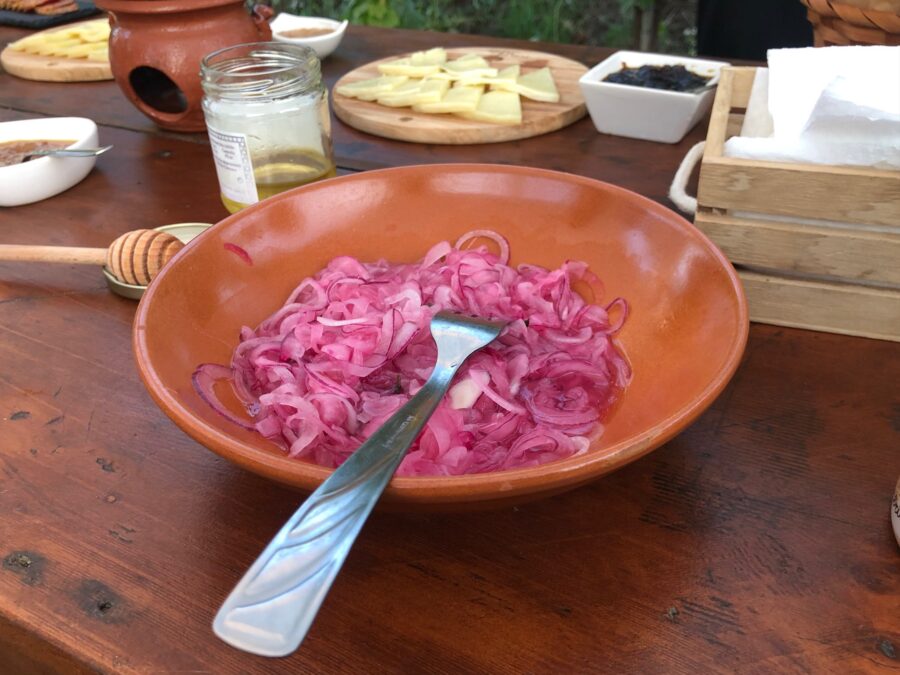 Furchì Wine ci ha riservato nel banchetto che ha seguito la visita. Sul tavolo allestito direttamente in vigna oltre alle cipolle, anche