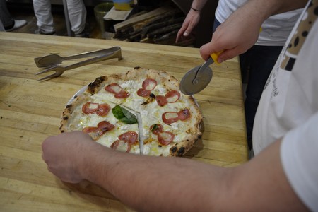 Di lunga tradizione la mozzarella nella mortella del Caseificio Le Starze, un latticino tipico a forma di lingua di vacca prodotto nella zona del Monte Gelbison che, come ci ha raccontato Mario Di Bartolomeo, veniva avvolto nei rami di mirto poi chiusi con fiori di ginestra. Tradizionale anche il metodo di pesca delle alici catturate attraverso la rete di menaica, antica tecnica risalente ai Greci che permette di pescare solo gli esemplari della giusta taglia, illustrato direttamente da Donatella Marino di Marina di Pisciotta. Dal mare alla terra con le olive ammaccate salella, che vengono spaccate con le pietre di mare, dell’Agriturismo “Al Sentiero”, altro Presidio Slow Food come le alici. Tra i salumi, squisita la soppressata di Gioi del Piccolo Salumificio Artigianale, anche questo Presidio Slow Food, e il capocollo di maiale della Macelleria Luongo. Un altro tuffo in mare con il tonno “alletterato” di Luca Cella, una qualità di tonno che sul dorso ha delle lettere di colore chiaro – da qui il nome – e sul ventre alcuni nei scuri. Tutti, insieme a mozzarella e ricotta di bufala, fiordilatte di Agerola e pomodorini pizzutello e datterino giallo, sono diventati gli squisiti ingredienti delle pizze sfornate dal team della pizzeria daZero. Le sorprese hanno interessato anche le birre artigianali prodotte dai piccoli birrifici locali Birrificio Sud di Castellabate e Birrificio Fiej di Castelnuovo Cilento. Discorso a parte per i vini dell’Azienda Agricola Cobellis di Vallo della Lucania, presentati direttamente da Luigi Busiello, che ha esaltato le caratteristiche di questi prodotti di un’area viticola di tutto rispetto e di antica tradizione.