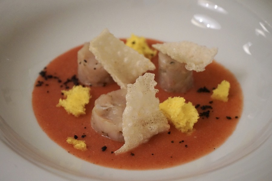 Senza dimenticare una voluta vocazione locale con i migliori ingredienti di stagione e le materie prime pugliesi, ma anche nazionale e internazionale nella ricerca di qualche determinato prodotto e nella selezione degli amari, rhum, whisky, grappe rosoli e perfino birre da meditazione come le Barley Wine e un gin prodotto in Salento, tutti in bella mostra in sala e che ci indica con un sorriso dicendo “il fine pasto per noi è una cosa seria”.