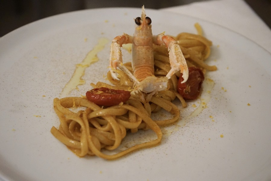 Anche la cantina è di tutto rispetto, con un interessante ventaglio di vini pugliesi ma anche proposte fuori regione. Una bella scelta anche tra gli oli, questi tutti rigorosamente made in Puglia: assaggiamo Oro di Rufolo, prodotto a Giovinazzo, sul pane fragrante e fatto in casa. Una novità all’inizio imposta dalle restrizioni del lockdown e poi sempre più apprezzata dai clienti tanto da diventare adesso un’abitudine quotidiana.