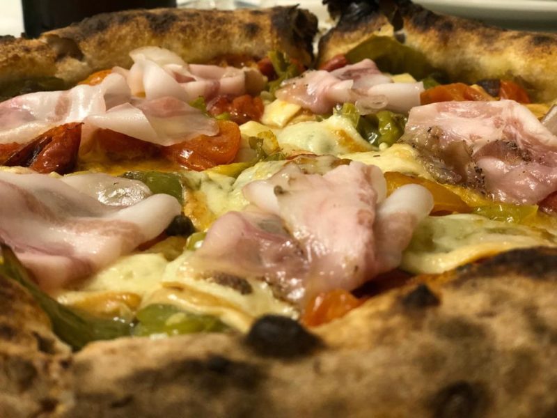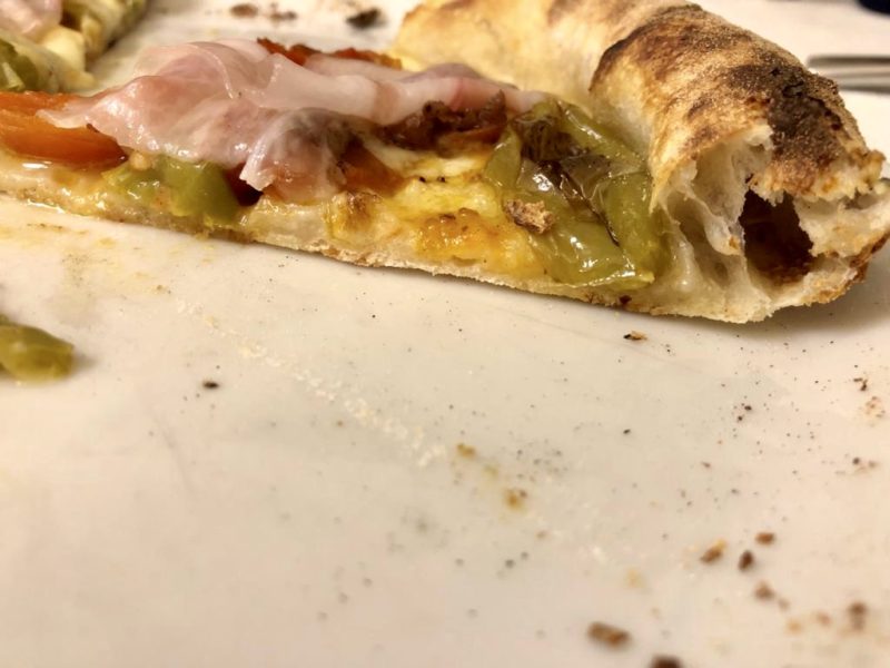 E l’armonia tra i gusti decisi della mozzarella di bufala affumicata prodotta a San Giovanni Rotondo, dei friggitelli, dei pomodorini al forno e del guanciale di Martina Franca, contraddistingue la pizza a cui i sottili peperoni fritti danno il nome, “Friggitelli” appunto: incredibilmente saporita e profumata oltre che perfettamente digeribile, dal cornicione alto morbido e arioso. E se a prima vista ho pensato che non sarei mai riuscita a digerire, per di più di sera, una pizza del genere mi sono dovuta ricredere: nessun su e giù dei peperoni e il mattino dopo niente mal di testa e bocca asciutta e pulita.