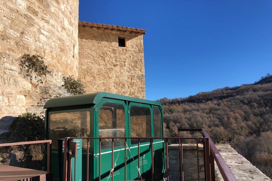 Entrando si rimane sconcertati dalla modernità di alcune soluzioni quali l’impianto idrico alimentato dalle cisterne pensili, i servizi igienici celati nelle torri accanto a quelle che dovevano essere le camere, ma anche le scale a chiocciola che girano in senso antiorario e sono formate da 44 gradini scavati in un unico masso lapideo.