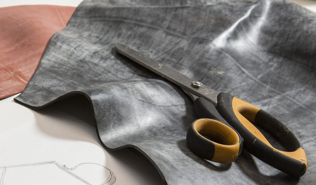 Tutte sono oggetti unici, creati con materiali di riciclo come camere d’aria, recuperate da rivenditori di biciclette e gommisti; ritagli di pvc recuperati da tendonifici; cinture di sicurezza delle auto selezionando solo quelle posteriori data la loro minor usura.