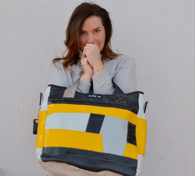 Caro il tema dell’impatto ambientale, si è inventato completamente un mestiere, in quanto Luca non è figlio d’arte, non è cresciuto in bottega, non sa nulla di concia, pellami, creazione di borse, comincia a ideare e a produrre le sue prime Kepher Bags. Per questo si affida ad artigiani locali, signore che sanno come trattare i materiali che lui recupera, che sanno dare vita concreta alle sue idee. Quindi tutto rimane rigorosamente “made in Toscana”, dall’idea al prodotto compiuto.