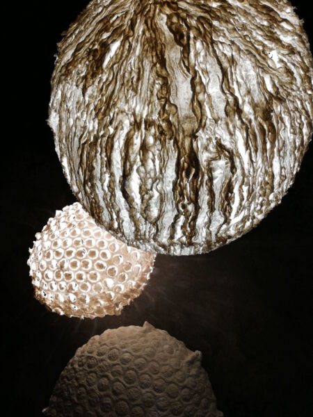 Gli oggetti che realizza nel suo laboratorio leccese sono dedicati agli spazi moderni del vivere quotidiano di chi apprezza l’essenzialità e la semplicità delle forme, ma anche e soprattutto rispetta l’ambiente e l’ecosostenibilità delle sue creazioni dal design moderno. Un design sinuoso ed efficace grazie alla cartapesta, un materiale che Francesca Carallo conosce e trasforma fino a renderlo duttile come un tessuto che viene esaltato dalla luce, acceso dal colore, ammorbidito dalla tonalità naturale, che fa da base a sculture senza peso ma resistenti.