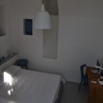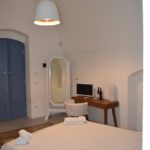 La nuance viene poi declinata nel nome delle stanze: Cobalto, la nostra al piano terra; Lavanda, la stanza al primo piano e l’unica con balcone; Pervinca, nella parte più antica che ospita anche una zona comune con la reception e un grande camino bianco; Indaco, ricavata nella cantina dell’antica masseria.