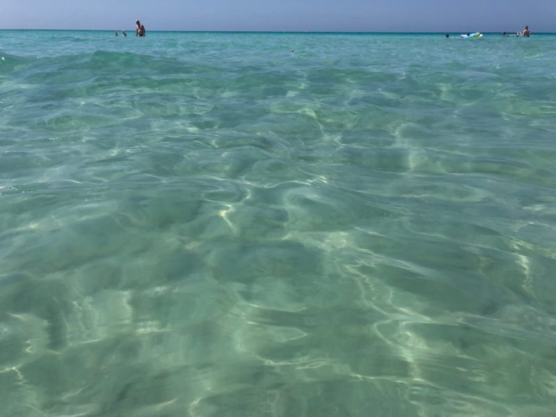 Sulla spiaggia di sabbia fine del lido convenzionato Bora Bora in località Torre San Giovanni, siamo stati accolti ogni giorno da Federico che ci ha sistemato sdraio e ombrellone nell’area attrezzata che accoglie i cani, che possono viaggiare anche a bordo del bus navetta per la spiaggia, ma nel trasportino, per cui noi vi abbiamo rinunciato date le dimensioni di Otto, preferendo spostarci con la nostra auto e usufruendo del parcheggio gratuito.