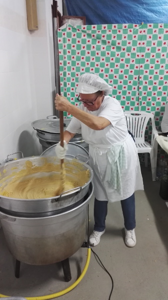 Dalla signora che si occupa di rimestare la purea di fave nel grande pentolone di alluminio, che ricorda quello in cui Grande Puffo prepara le sue pozioni magiche, fino a coloro che facendo avanti e indietro servono le persone che pazientemente attendono il loro turno per gustare le prelibatezze preparate dagli instancabili cuochi coadiuvati dall’altrettanto instancabile staff di persone addette alla pulizia di pentole, utensili e pavimenti.