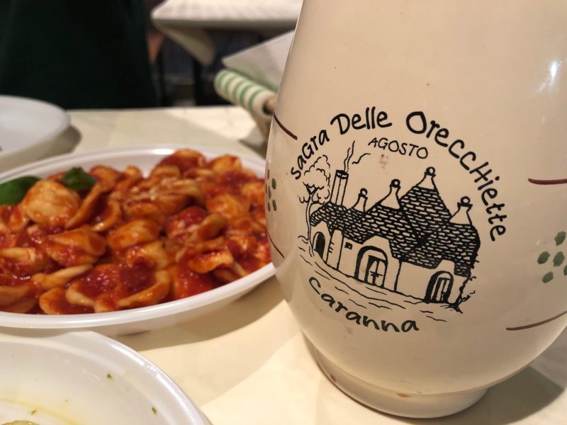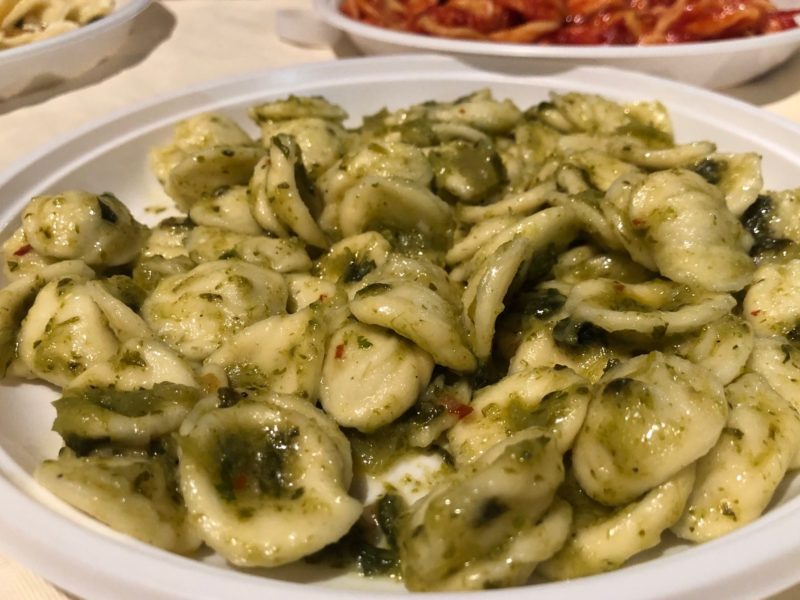 Su offerta è basata anche la vendita delle orecchiette fresche fatte a mano “in diretta” dalle signore del posto che volentieri posano per le foto e i video di chi affolla la sagra.