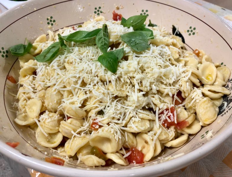 Su offerta è basata anche la vendita delle orecchiette fresche fatte a mano “in diretta” dalle signore del posto che volentieri posano per le foto e i video di chi affolla la sagra.